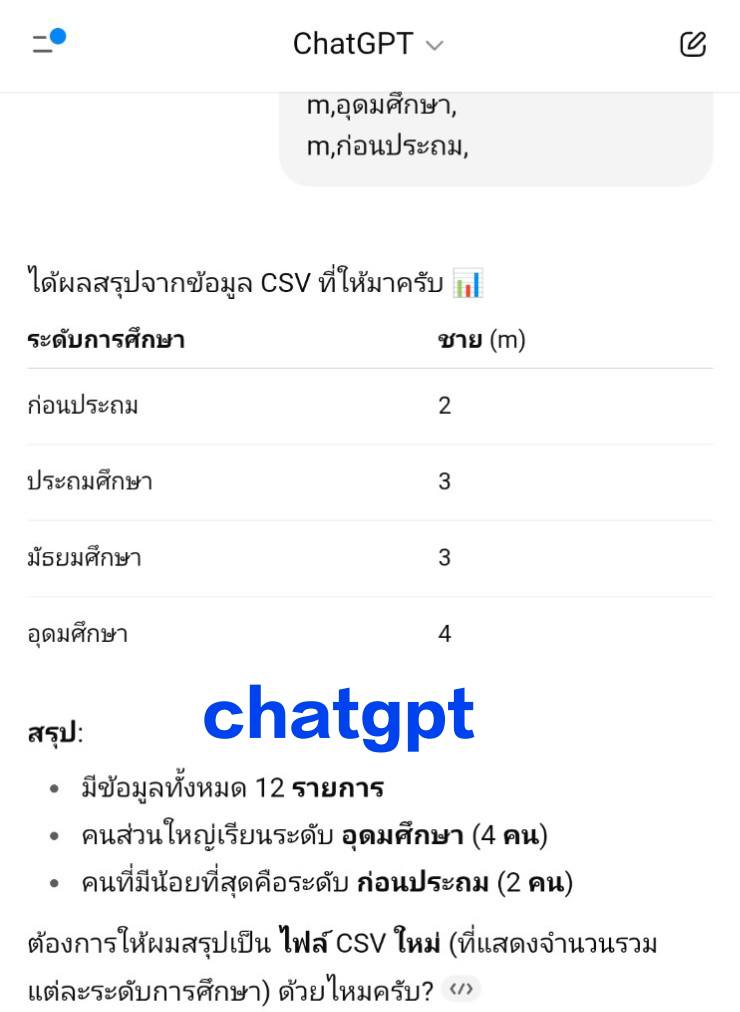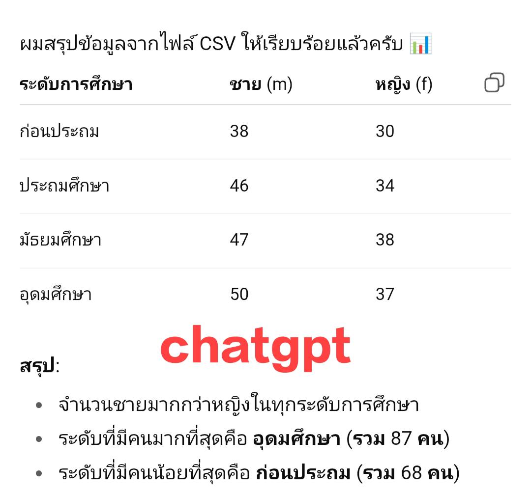 prompt : สรุปข้อมูลแบบ csv ที่อยู่ด้านล่างนี้